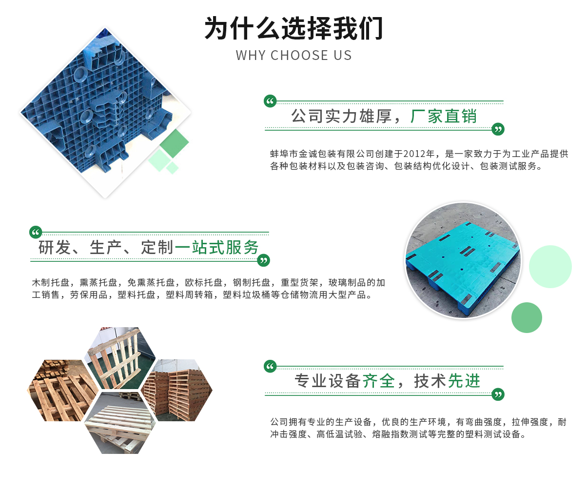 蚌埠市金誠包裝有限公司創(chuàng)建于2012年,是一家致力于為工業(yè)產(chǎn)品提供各種包裝材料以及包裝咨詢、包裝結(jié)構(gòu)優(yōu)化設計、包裝測試其中包括木制托盤,熏蒸托盤,免熏蒸托盤,歐標托盤,鋼制托盤,重型貨架,玻璃制品的加工銷售,勞保用品...